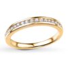 This lovely wedding band for her sparkles with round diamonds channel-set in 14K yellow gold. The ring has a total diamond weight of 1/5 carat.