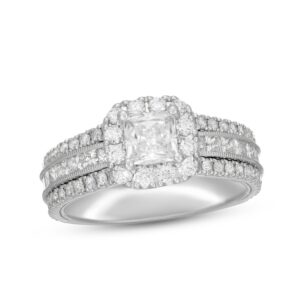 Diamond Engagement Ring 2-1/8 ct tw Princess & Round-cut 14K White Gold