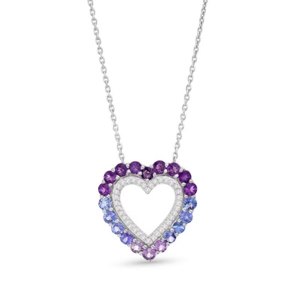 Vibrant Shades Amethyst, Tanzanite, White Sapphire Heart Necklace Sterling Silver 18″