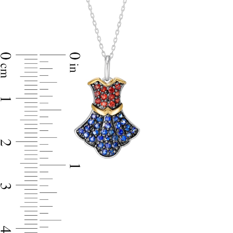 Inspired by her impeccable style, this gemstone pendant Created in sterling silver, this epic choice showcases a sculpted dress with regal red garnets along the bodice and bright blue sapphires along the layered skirt. 10K gold accents complete the look. Buffed to a brilliant luster, this pendant suspends along a 16.0-inch cable chain with 2.0-inch extender that secures with a spring-ring clasp.This exclusive fine jewelry collection inspires you to wear your strength, confidence and power.